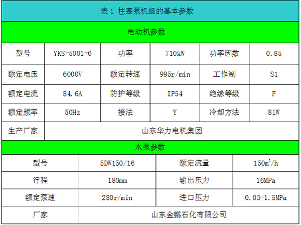 3 柱塞泵工藝工況及主電機(jī)參數(shù)介紹