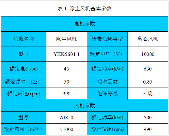 按照我國1996年頒布的《大氣污染物綜合排放標(biāo)準(zhǔn)》(GB16297一1996),對煙氣必須冷卻、凈化,由引風(fēng)機(jī)將其排至煙囪放散或輸送到煤氣回收系統(tǒng)中備用。因此,每座焦?fàn)t需配有一套除塵系統(tǒng)。一期工程的地面除塵站使用的是一臺(tái)630kW/10kV的高壓電機(jī)拖動(dòng)風(fēng)機(jī),抽取前級(jí)焦?fàn)t出焦時(shí)產(chǎn)生的焦?fàn)t煙氣和灰塵,吸收的煙塵和氣體進(jìn)入除塵站的布袋除塵器濾除粉塵和有害物質(zhì)以后,高溫氣體經(jīng)高爐排放到空氣中。除塵系統(tǒng)風(fēng)機(jī)型號(hào)AI850。由于焦?fàn)t周期性間斷推焦,為滿足節(jié)能和環(huán)保要求,要求風(fēng)機(jī)在整個(gè)煉焦工作周期內(nèi)變速運(yùn)行,推焦時(shí)高速運(yùn)行,不推焦時(shí)低速運(yùn)行。原系統(tǒng)采用液力偶合器調(diào)速,高速800rpm,低速600rpm。經(jīng)過一段時(shí)間的運(yùn)行,發(fā)現(xiàn)液力偶合器技術(shù)存在著局限性,主要表現(xiàn)在:
