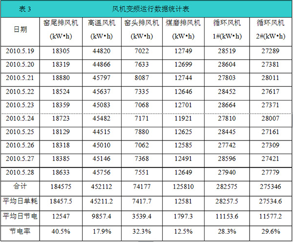 7.3水泥生產(chǎn)風(fēng)機(jī)變頻運(yùn)行數(shù)據(jù)統(tǒng)計(jì)表