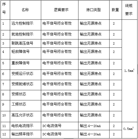 表2、高壓變頻系統(tǒng)到用戶DCS的接線: