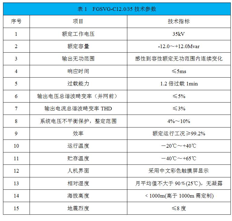 新風(fēng)光FGSVG-C12.0/35技術(shù)指標如表1所示。