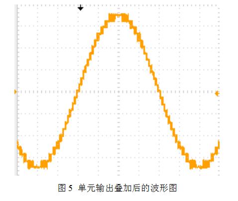 單元鏈接后三相之間進行星型連接并通過電抗接入電網(wǎng),通過對每個單元的PWM波形的疊加,可得到逼近正弦的階梯PWM波形,如圖5所示為星型連接的單相波形。