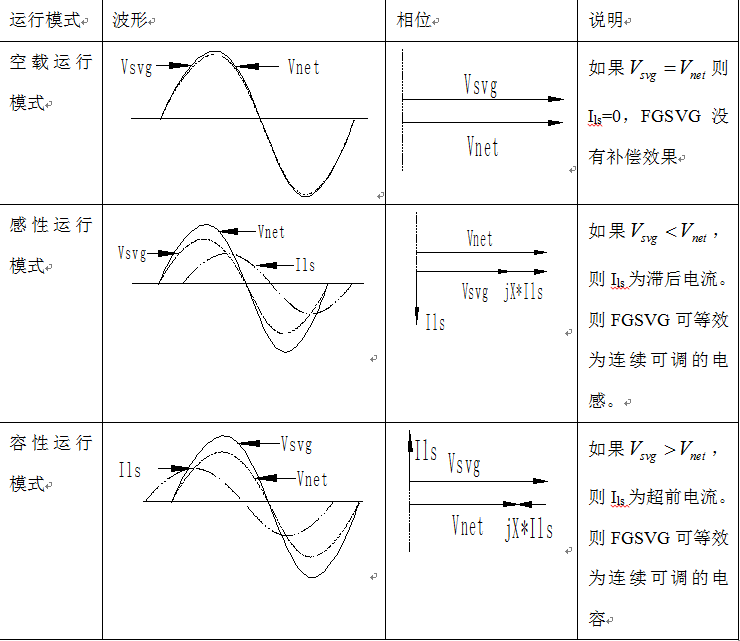 表1 SVG運行模式原理示意圖