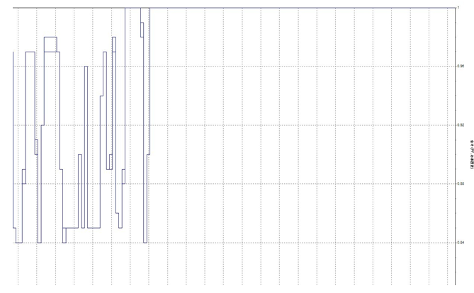 圖4為記錄的玉礦線SVG投運前功率因數(shù),有圖4可以看出未投運SVG,功率因數(shù)為0.83左右,對電網(wǎng)的穩(wěn)定性不利。